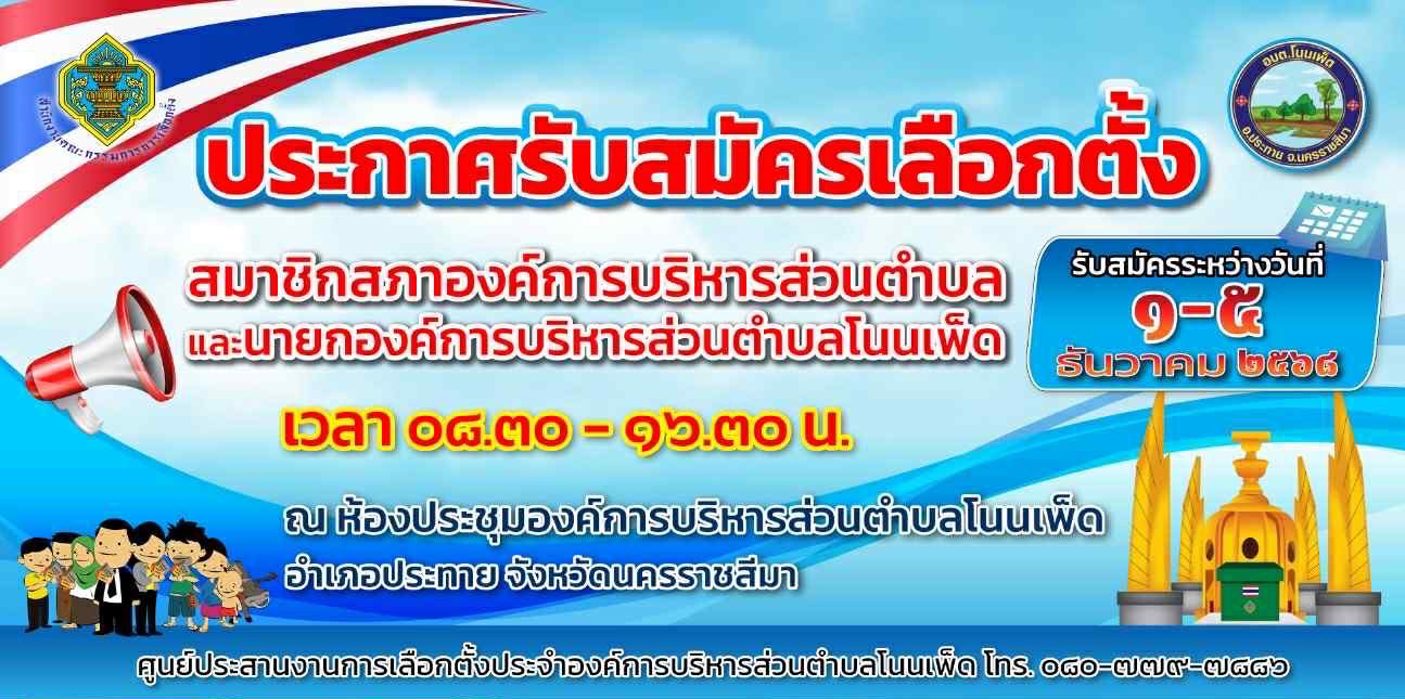 ประกาศวันเวลาและสถานที่ รับสมัครเลือกตั้งสมาชิกสภา อบต.โนนเพ็ด และนายก อบต.โนนเพ็ด