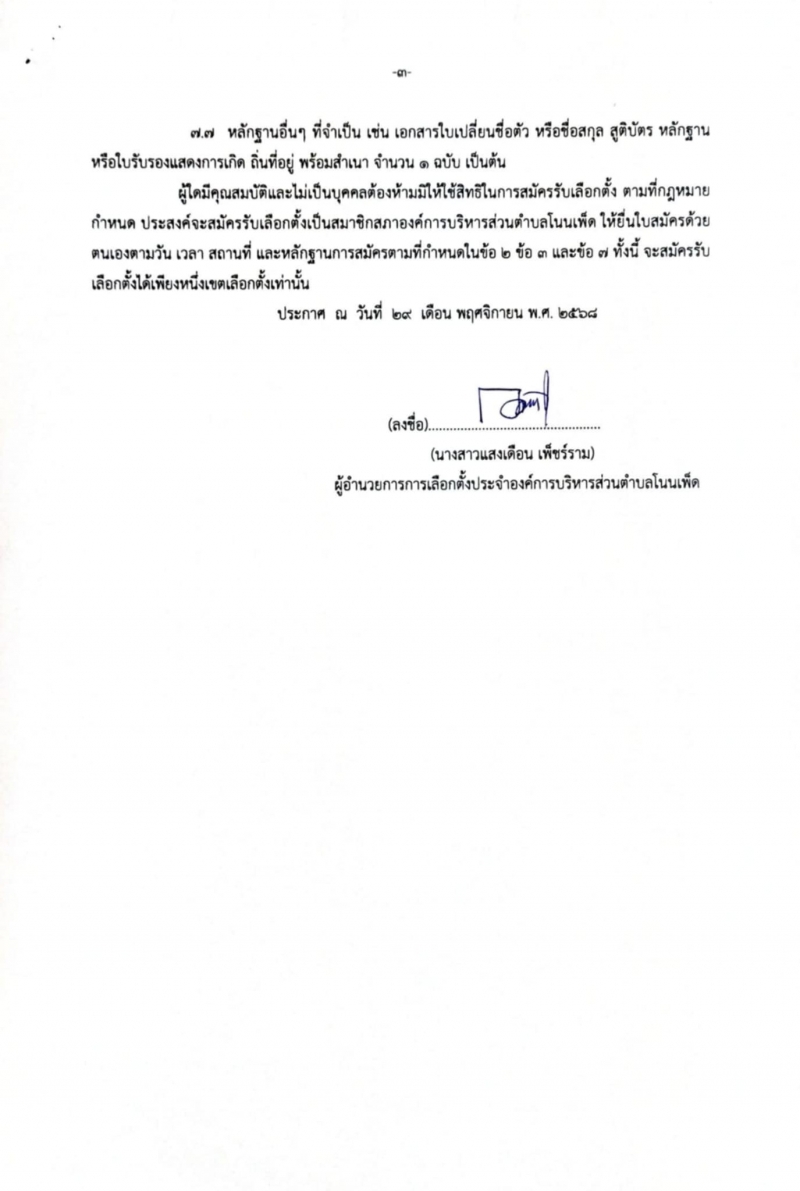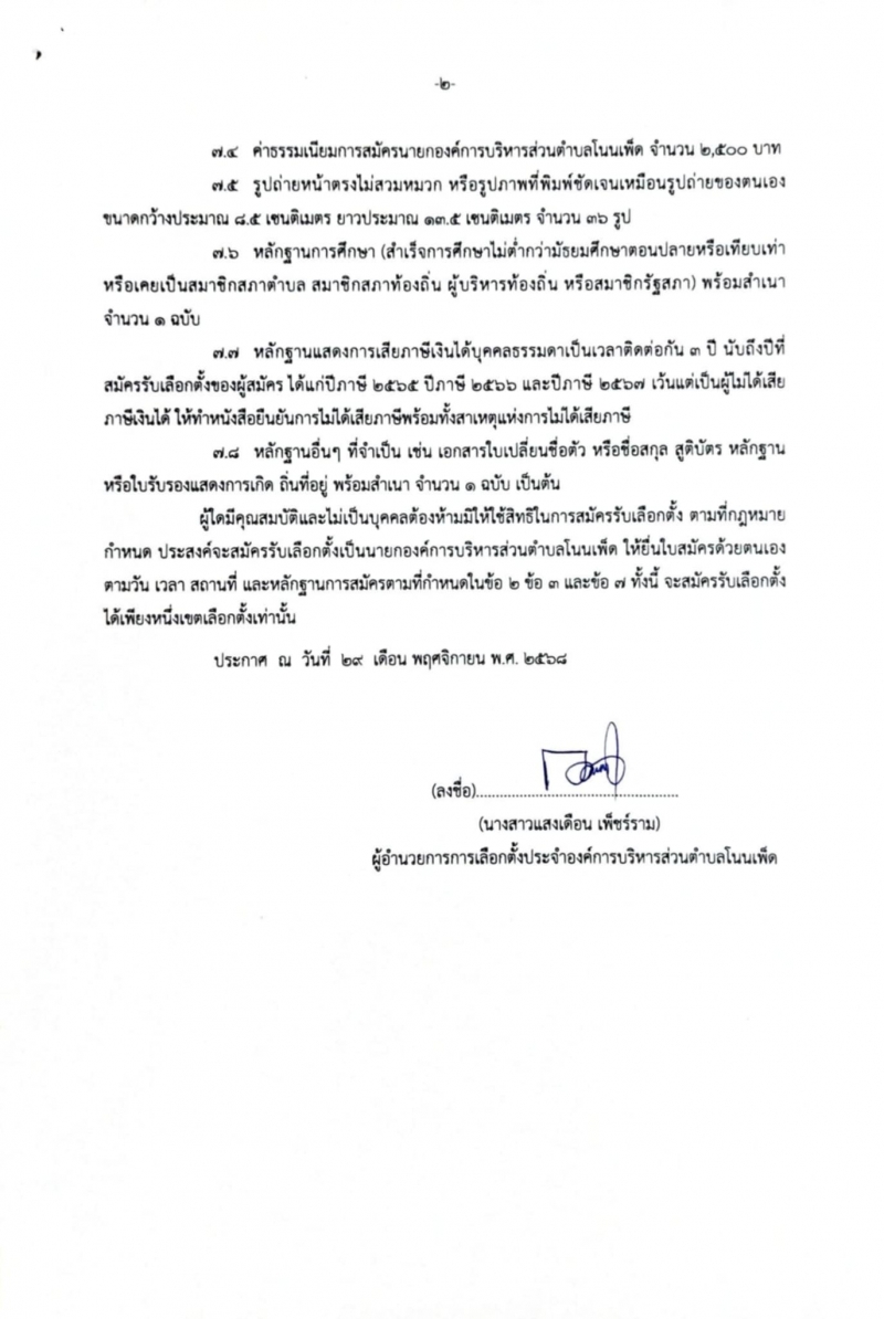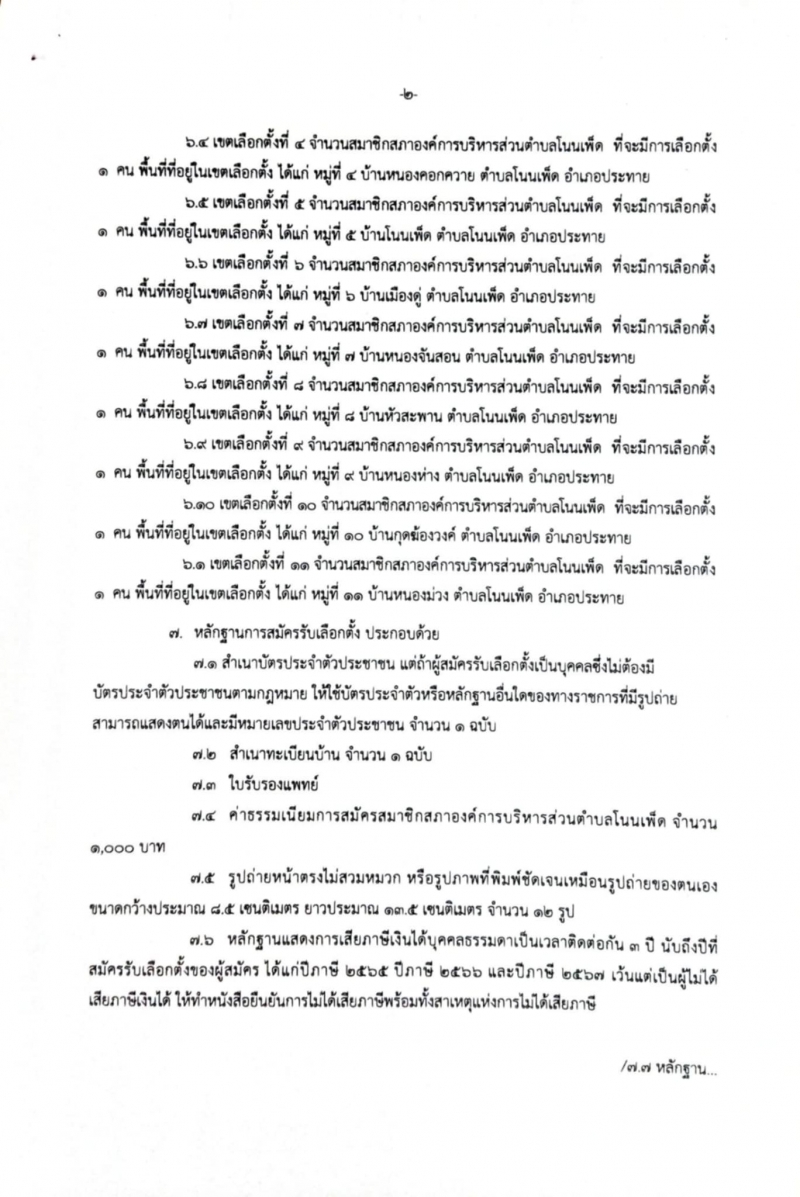 ประกาศวันเวลาและสถานที่ รับสมัครเลือกตั้งสมาชิกสภา อบต.โนนเพ็ด และนายก อบต.โนนเพ็ด