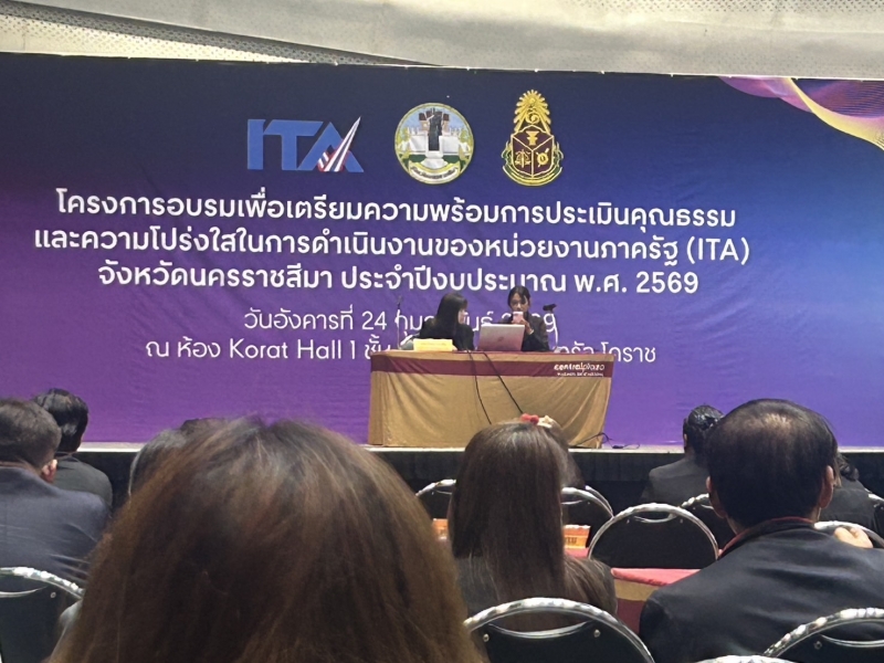 เมื่อวันที่ 24 กุมภาพันธ์ 2569 นางสาวแสงเดือน เพ็ชร์ราม รองปลัด อบต.โนนเพ็ด มอบหมายให้ นางจุมพิศ คุณล้าน นักวิเคราะห์นโยบายและแผน รักษาราชการแทน หัวหน้าสำนักปลัด นางกชกร สมทรัพย์ นักทรัพยากรบุคคล และนายจารุศักดิ์ ปุลาโส นักจัดการงานทั่วไป เข้าร่วมโครงการเพื่อเตรียมความพร้อมการประเมินคุณธรรมและความโปร่งใสในการดำเนินงานของหน่วยงานภาครัฐ (ITA) จังหวัดนครราชสีมา ประจำปีงบประมาณ พ.ศ.2569 ณ Koat Hall 1 เซ็นทรัลโคราช เพื่อเตรียมความพร้อมการประเมินคุณธรรมและความโปร่งใสในการดำเนินงานของหน่วยงานภาครัฐ (ITA)