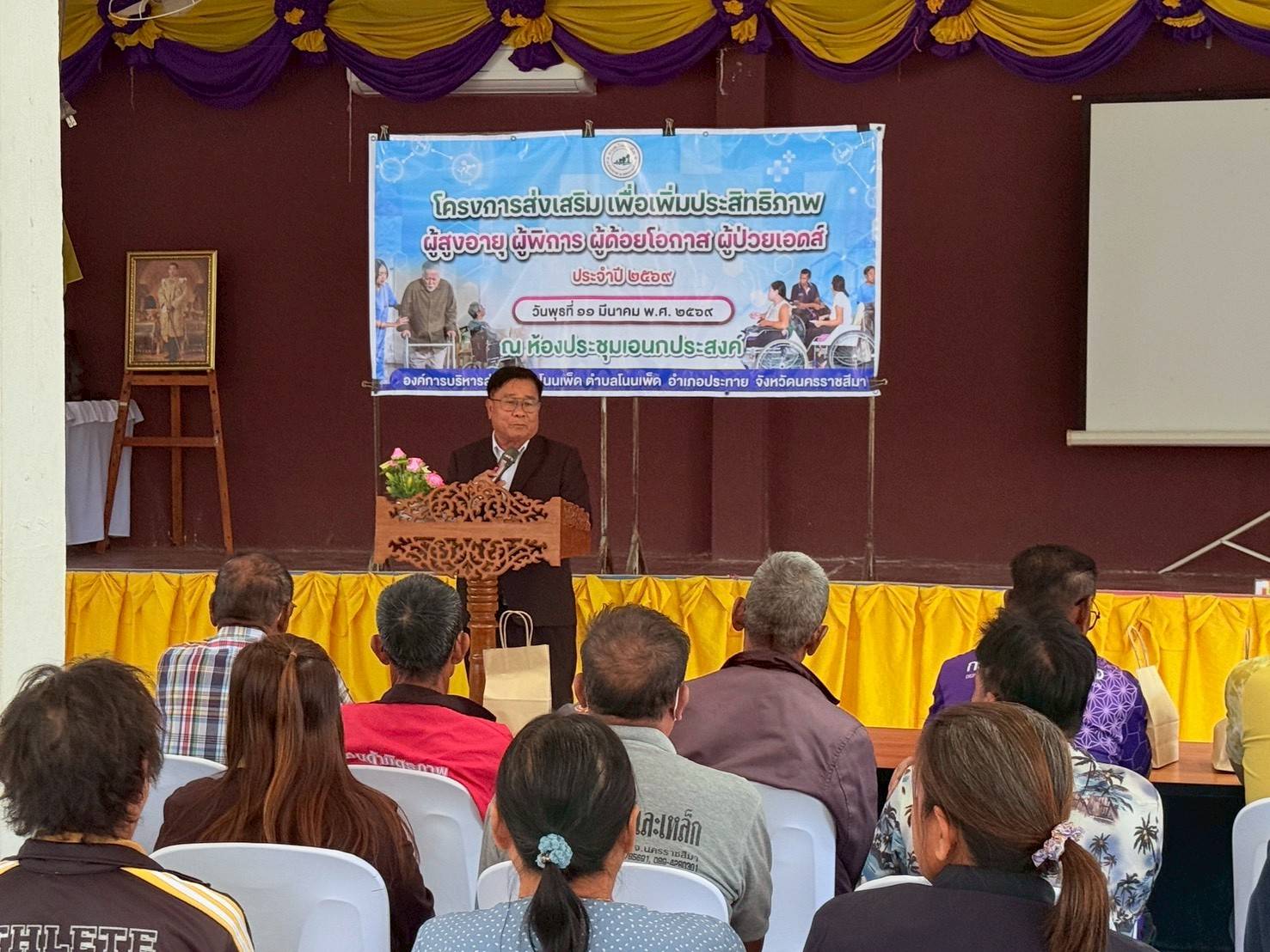 วันพุธที่ ๑๑ มีนาคม ๒๕๖๙ นายธัชพล อ่อนสุวรรณ นายกองค์การบริหารส่วนตำบลโนนเพ็ด ได้เป็นประธานในพิธีเปิดโครงการส่งเสริมเพื่อเพิ่มประสิทธิภาพ ผู้สูงอายุ ผู้พิการ ผู้ด้อยโอกาส ผู้ป่วยโรคเอดส์ ประจำปี ๒๕๖๙พร้อมด้วย ชมรมผู้สูงอายุตำบลโนนเพ็ด คูณหมอจากรพ.สต.หนองช่างตาย และพนักงานองค์การบริหารส่วนตำบลโนนเพ็ด